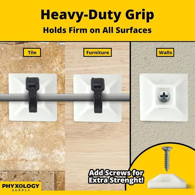 ELIMINATE CABLE TANGLES AND CLUTTER. Dealing with cable ties all day is already hard enough as it is, make your life easier with sturdy anchors from Phyxology Supply.