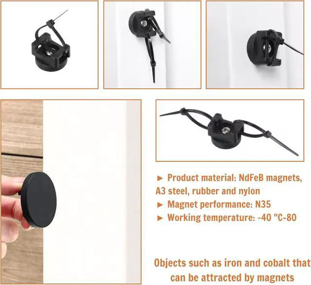 EASY INSTALLATION - Hassle-free setup with reusable zip ties, offering quick and easy adjustments to declutter messy cords in seconds. The multipurpose magnet wire holders are convenient to use, just fix them on metal areas, insert the zip ties and tighten them; They are removable, and you can easily adjust the positions and angles as you need