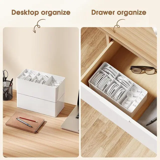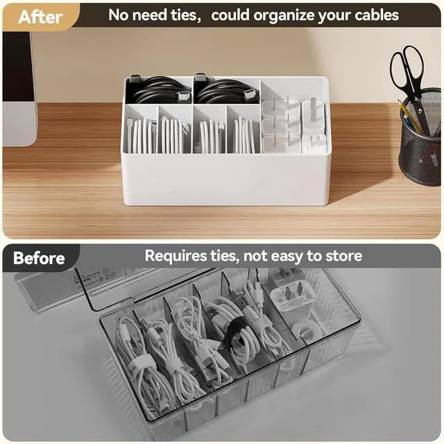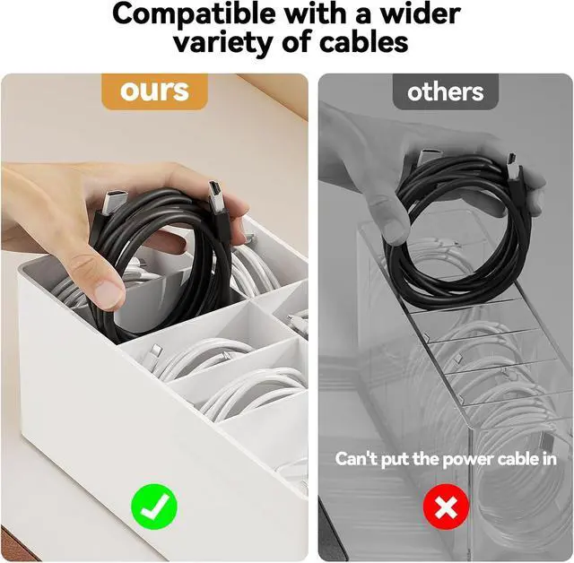 Large capacity: can hold at least 6 cables and 5 for Apple charging heads, keep desktop clean