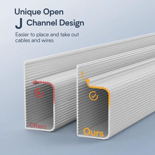 Traceless Installation Experience: Our J-channel cable management system features a high-strength self-adhesive backing that simplifies the installation process, eliminating the need for drilling or additional tools. The easy-to-remove nature of our cable management kit allows you to adjust the position of cord organizer for desk or clean the area without leaving any residue