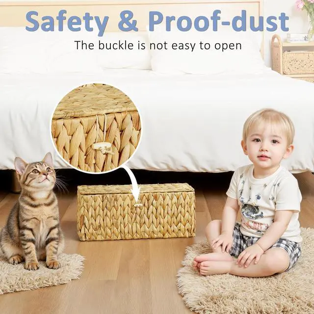 Basket with Lid: Cord storage organizer with lid to protect from dust, the safety buckle design is not easy to open, reducing the risk of electric shockideal for homes with kids or pets.