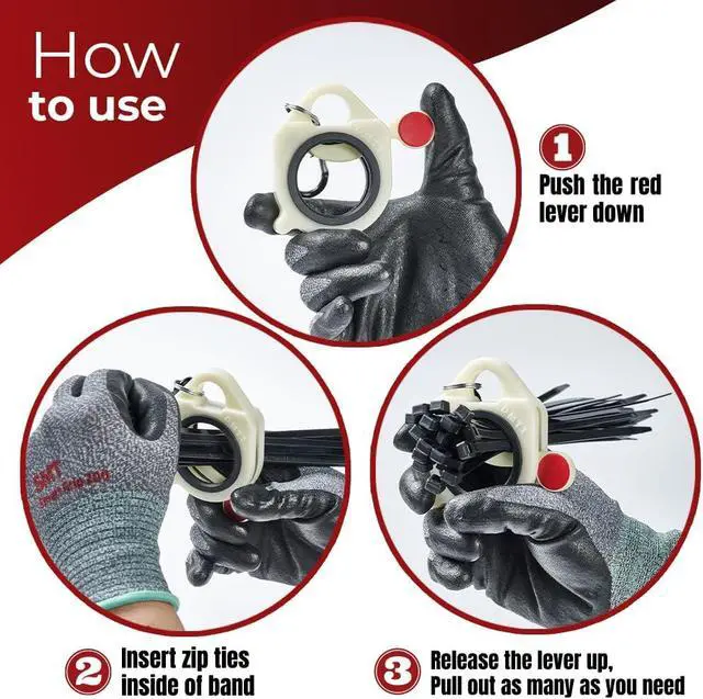 Efficiency: Zip ties band helps work more effectively. It fastens a bundle of cable ties, so many ties can be carried. Plus, the zip tie can be pulled-out piece by piece. The Wire ties organizer helps to save work time and make the work easier. Even zip ties band holds heavy-duty zip ties extra tightly.