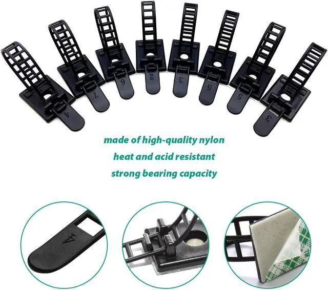 Adjustable and Reusable, can be easily unlocked to add or remove cables; optional screw mount for walls and wet environments.