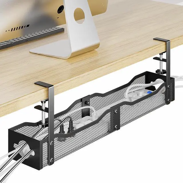 Tool Free Quick Installation: No drilling or adhesives required, won' t damage your desk surface. Under desk cable management simple setup, securely fasten to the edge of your table by rotating the reinforced clamp, then easily adjust the desk cable management tray position