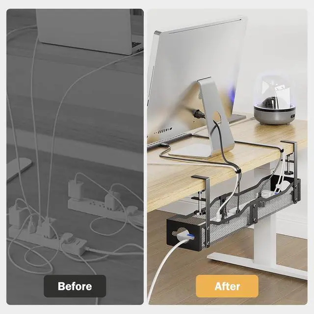 Upgraded Large Size: The extended 25 inch cable management under desk solution offers ample space for desk cable organizer. Its spacious and durable compartment accommodates outlets of various sizes, cable tray making it ideal for standing desk in home office