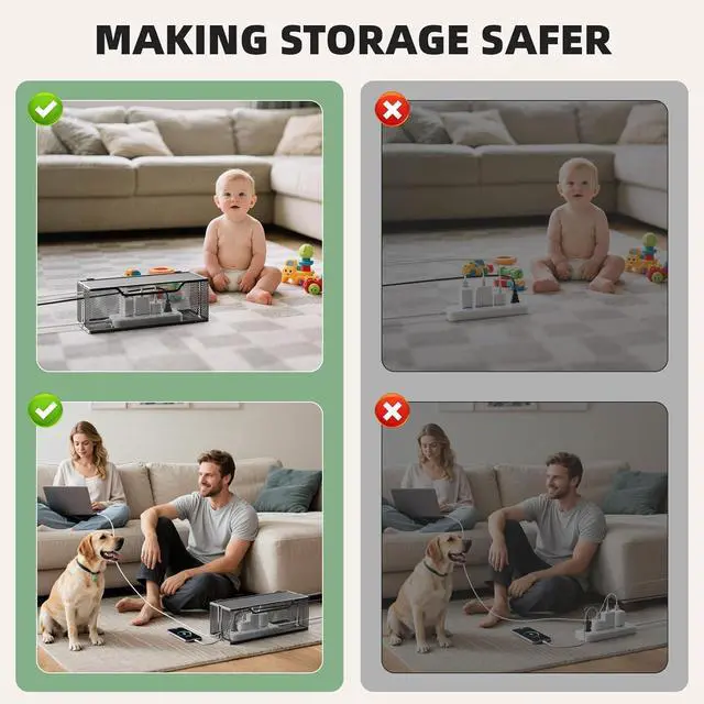 AMAZING GIFTTired of tangled cords at home or in the office? Our cable organizer box is designed to eliminate clutter and keep your space neat, safe, and organized. Its the perfect gift for family and friendsshare the benefits of a tidy and stress-free environment with those you care about!