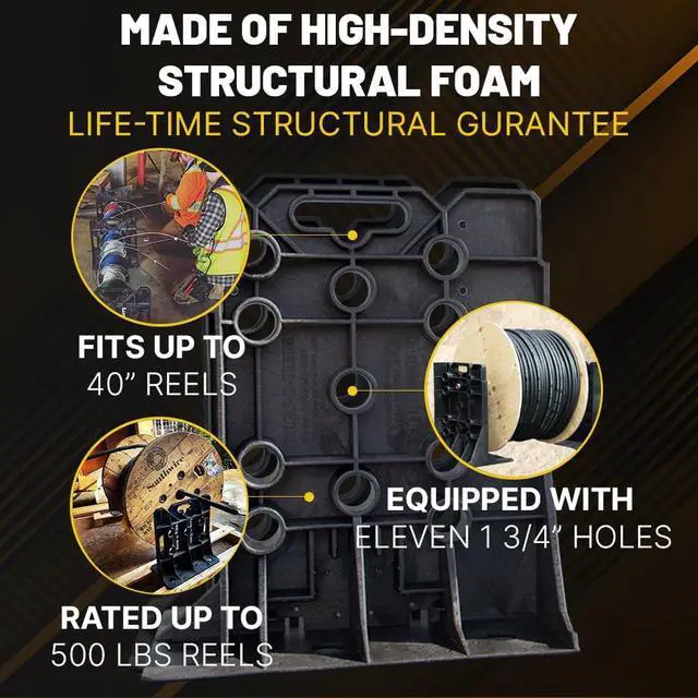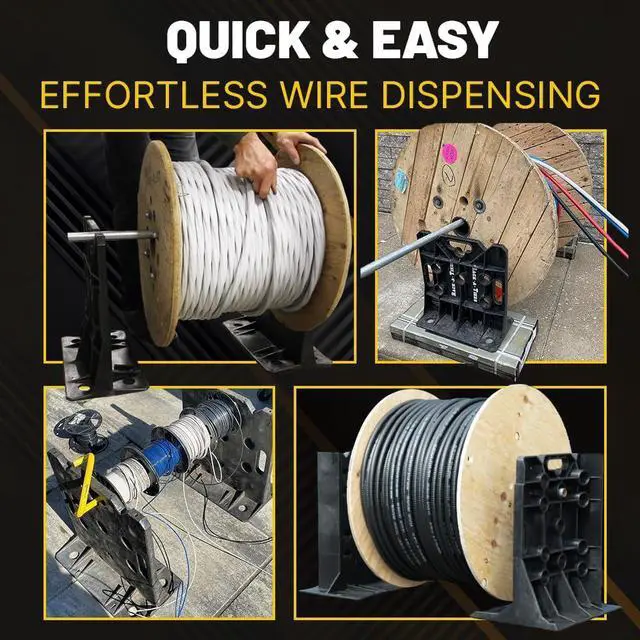 DISPENSE WIRE Rack-A-Tiers XL are unmatched in their ease and speed of set up as a wire spool rack. With 11 holes, 3 handles, and two V notches, this wire dispenser can handle multiple reels of varied sizes and weights making it a tool youll want at every job site.