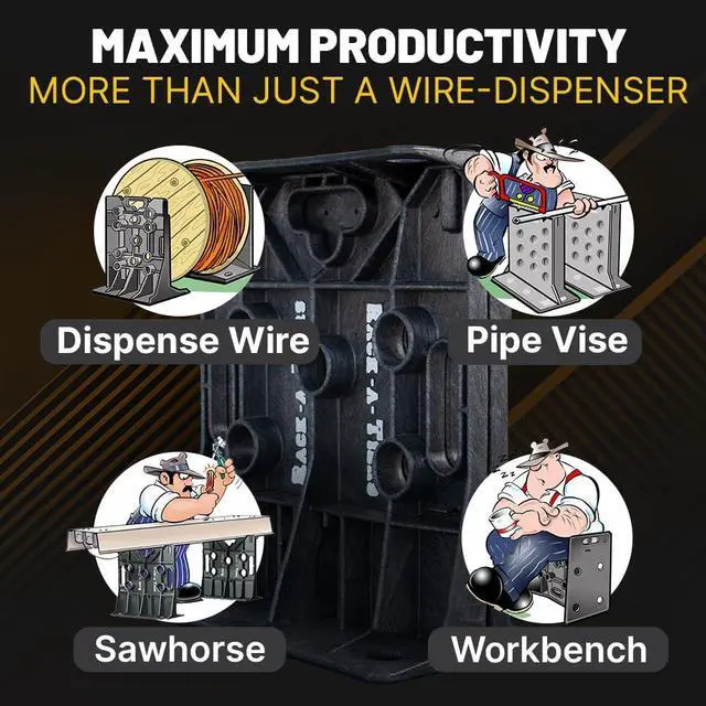 SAWHORSE Rack-A-Tiers XL wire dispenser excels as a sawhorse. Simply place the two sides at the appropriate distance to support what youre cutting. The XL wire dispenser is perfect for cutting lumber and conduit and can be screwed down into the floor for improved stability.