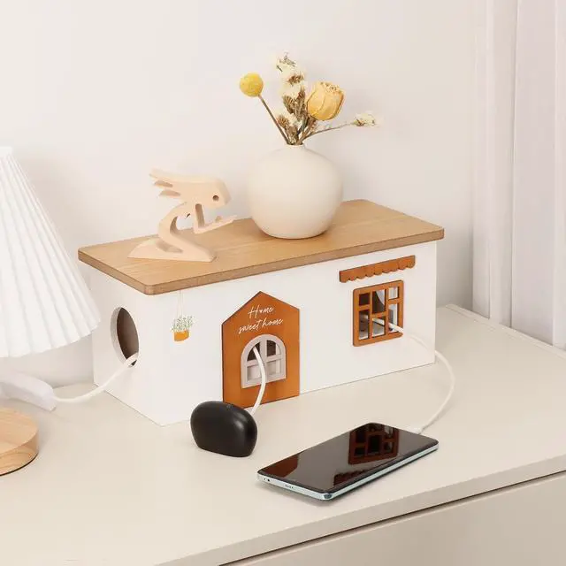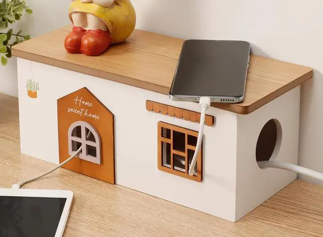 AESTHETIC APPEARANCE: Feathering a cute design, a natural wood material and a large capacity, the cord organizer box not just hides cables and plugs, but also turns a chaotic mess into a rustic, outstanding room decor.