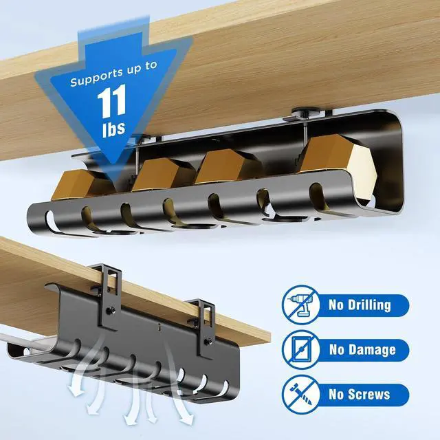 Sturdy Material: Cable Management Under a Desk is made of durable stainless steel with baking varnish material, Under Desk Cable Management are super sturdy and can hold up to 11 lbs items like power supply and other heavy items. It outperforms ordinary carbon steel trays in corrosion resistance and long-term reliability.