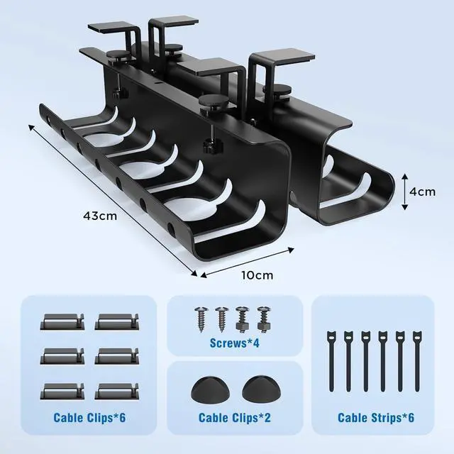 Complete All-in-One Set: Package includes 2 cable management trays, 4 fixing screws, 2 cable holders, 6 cable clips and 6 cable ties. Install in under 3 minutesno tools, screws, or adhesives required! Ideal for standing desks, L-shaped desks, home offices, and more.