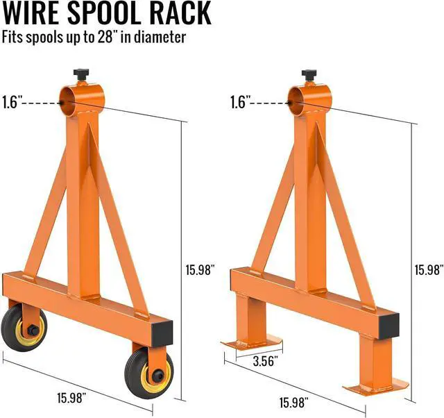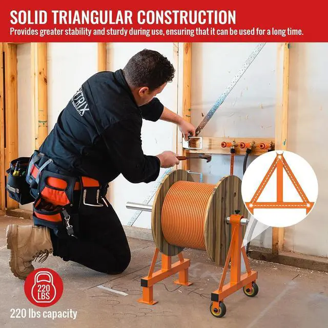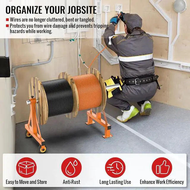 Rugged and Durable Portable Wire Spool Dispenser: Our wire caddy electrical is made of superior quality steel and finished with a orange powder coat to ensure long lasting use.