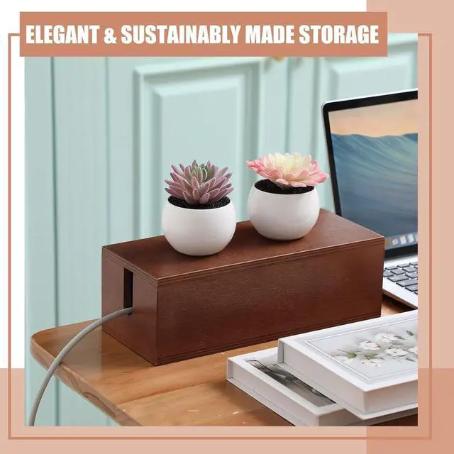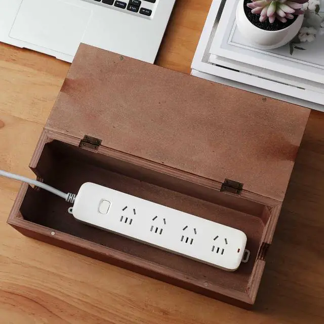 Quality Construction Meets Multi Functional Design: the wire management box is constructed from robust and water resistant walnut wood that is not just lightweight and flexible but also features a stunning texture that easy to care, it' s beautiful and practical, now that' s what we call smart designing