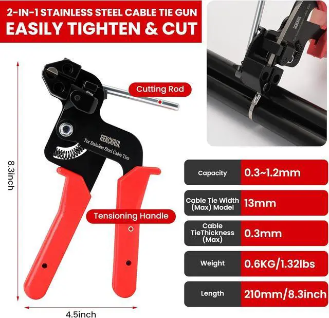 Ultra-Durable Construction: Made with heat-treated DC53 steel, our tie gun outperforms SKD11 steel with 2x higher toughness & wear resistance. Stainless steel ties withstand 200lbs weight, heat/cold resistance, rust and UV exposure