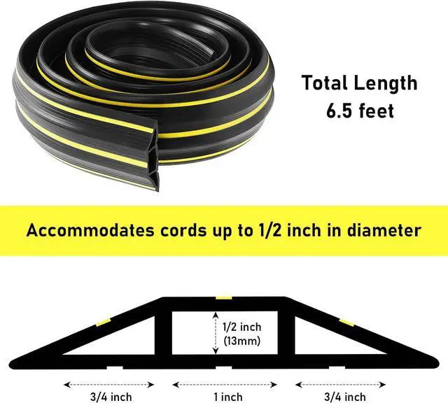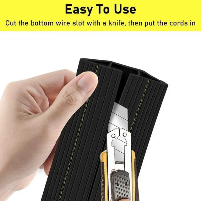 Easy To Use --- Floor cord protector can protect up to 1/2 inch height, 1 inch width cables, just gently use a knife to cut the reserved line slot of bottom, and put the cords in. Floor cord holder can be easily cut to size (by a scissors) if shorter wire cover lengths are required.