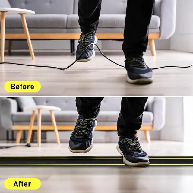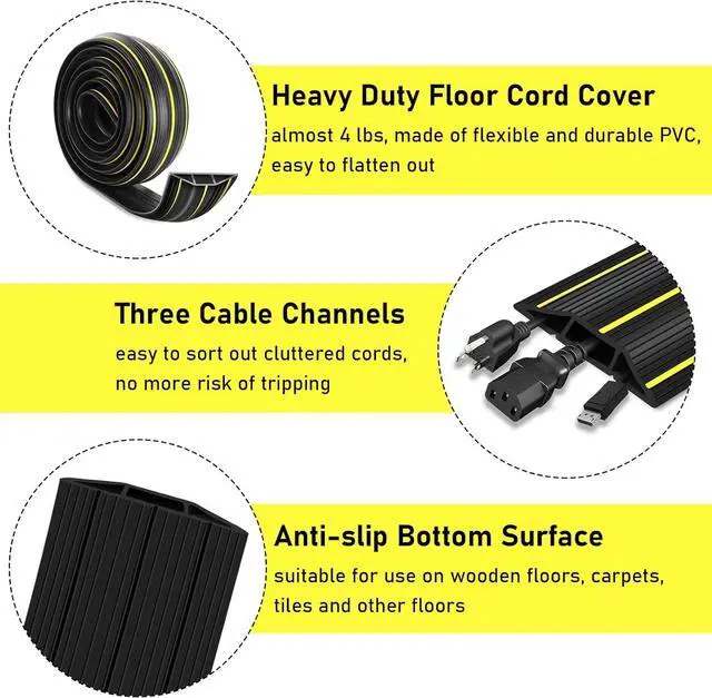 Reasonable Design --- 3 eye-catching yellow lines on the top of floor cord guard, serves as a warning role to tell people to pay attention to that sign and in case of tripping over by accident.