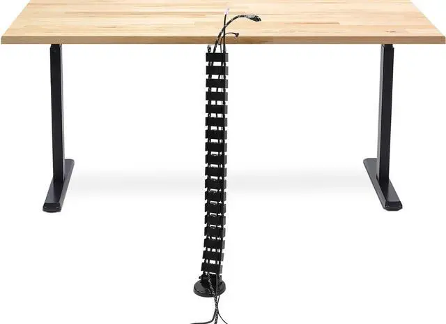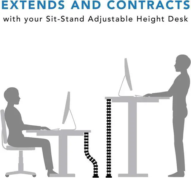 EASY INSTALLATION: Simply secure the connection plate to the bottom of your desk and position the weighted base on the floor. Change the length of the spine (up to 50 inches) based on the distance between floor and the desktop. Modular pieces easily snap together or can be removed. Excess length coils onto itself, making it ideal for height adjustable sit stand desks.