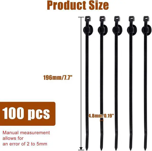 Package Includes100 Pcs x Cable Zip TiesCan keep tough in a temperature range from -40 to 266
