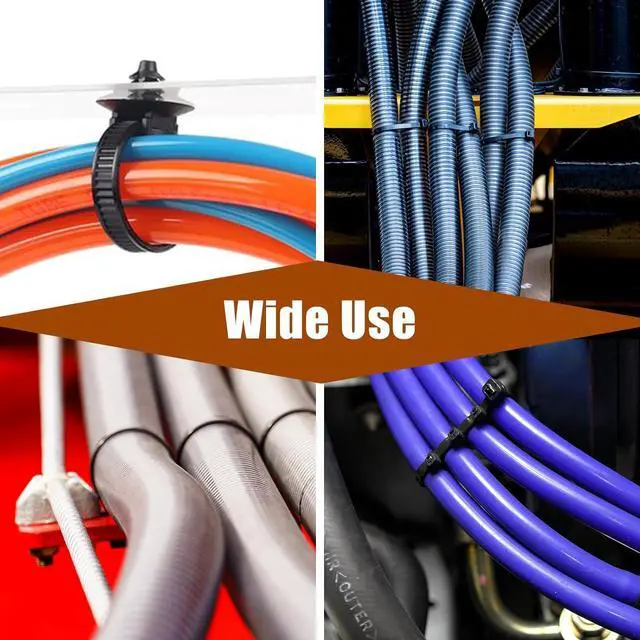 Multi-purpose: Widely used in household, construction, electronic, auto, cable and wire assemblyCan be used to bundle and sort various cables and wires, such as the fixing of wires of lighting, oil pipelines of mechanical equipment, etc