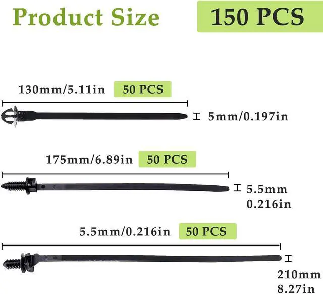 Tie Kits: Length 8.3 inches 50 pieces, 6.8 inches 50 pieces, 5 inches 50 pieces, head