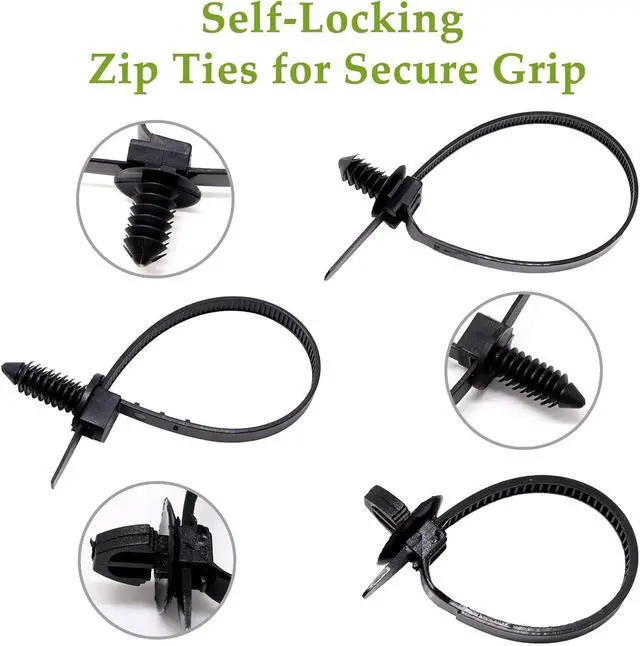 Widely Used: Black cable ties can be used in household, construction, electronic, auto, engine cable and wire assembly. Good for anchoring cables, (and small hoses/tail light wire harnesses/ secure wires/ Wire Harness Clips/ factory zip tie clips/ secure spark plug wires) and is equivalent replacement for similarly factory installed wire loom ties