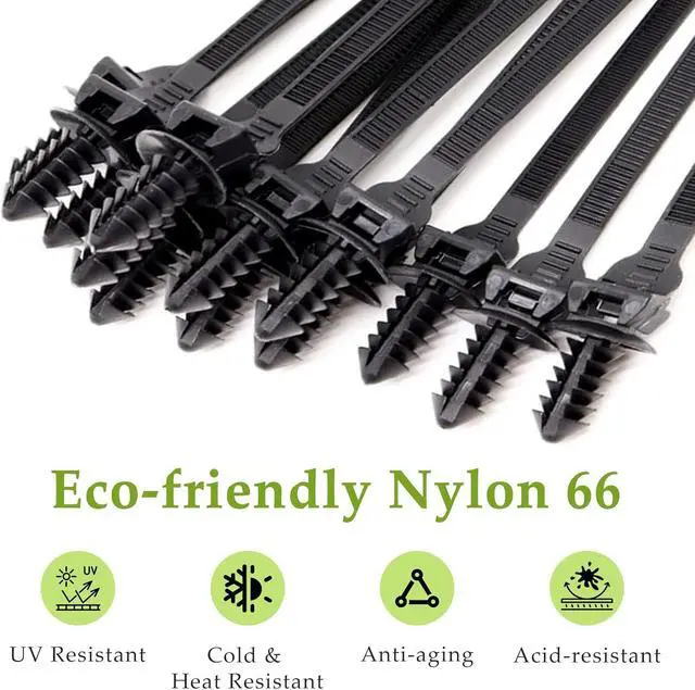 Material: Made of nylon plastic, flame retardant, safe, environmentally friendly, not easy to break, nylon push cable ties are suitable for fixing wires, cables and small hoses