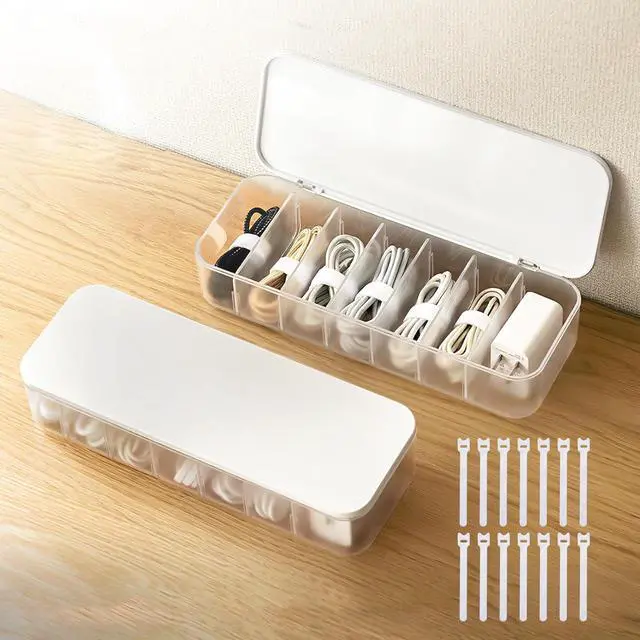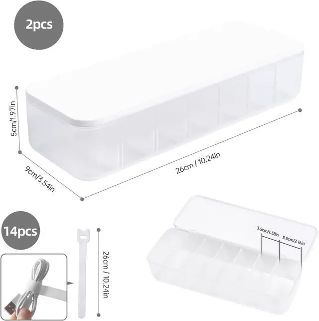 14 Cable TiesCable Organizer 2pc, clear cable box storage design with 14 cable ties, perfect for storing cables, cell phone chargers, power cords and wires, can meet your different needs.