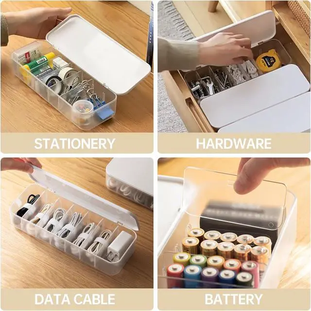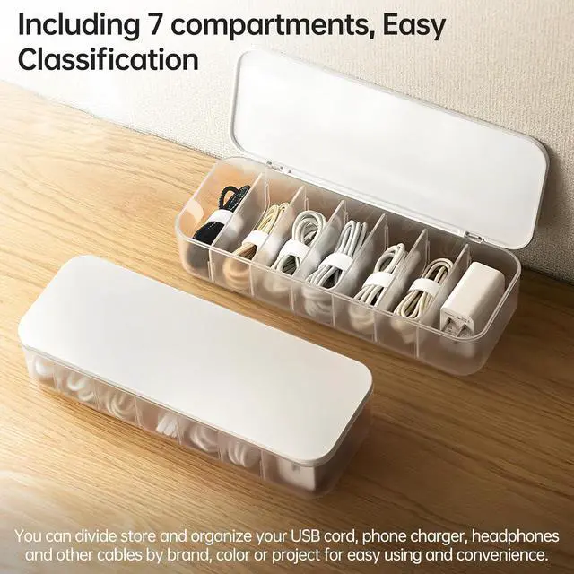 Durable and SturdyThe cable organizer with adjustable compartments is made of high quality ABS+PP material, transparent, durable and long-lasting, PAVSTINE Cable Organizer Storage Box set is practical and easy to clean, organizes all your desktop gadgets, saves space and keeps your desktop and drawers neat and tidy.