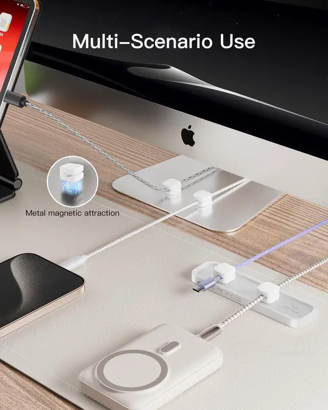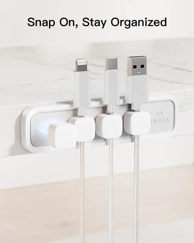 Secure Magnetic Snap-On Base: Magnetic clips snap easily into place and firmly hold 26 mm cables. One-handed access makes it simple to manage cords without tangling or fumbling.