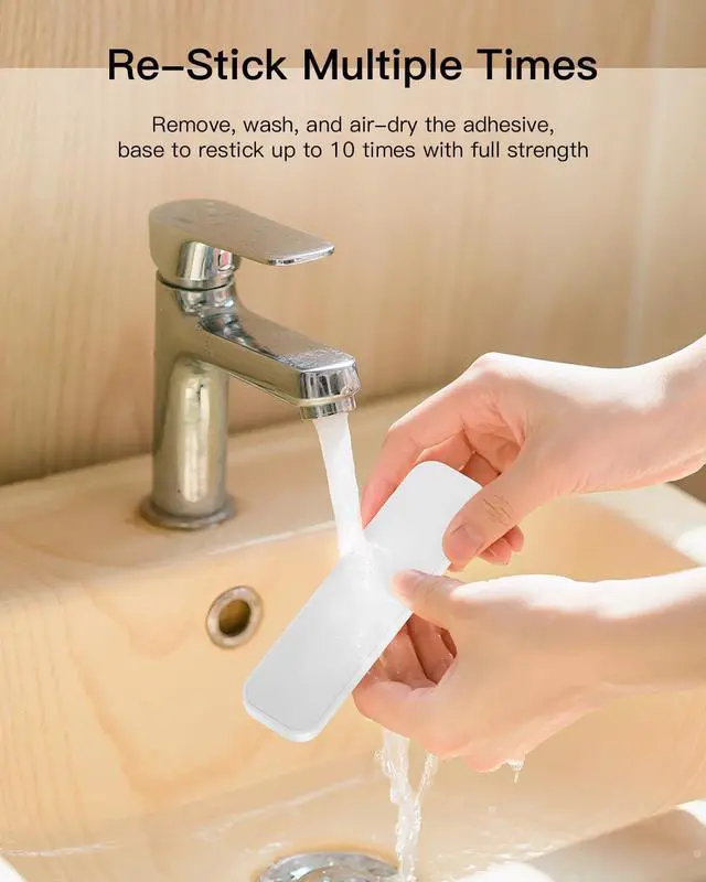 Reusable Up to 10 Times: Peel off cleanly without residue. Wash the adhesive pad with water, air dry for five minutes, and stick againstrong hold preserved for up to 10 uses.