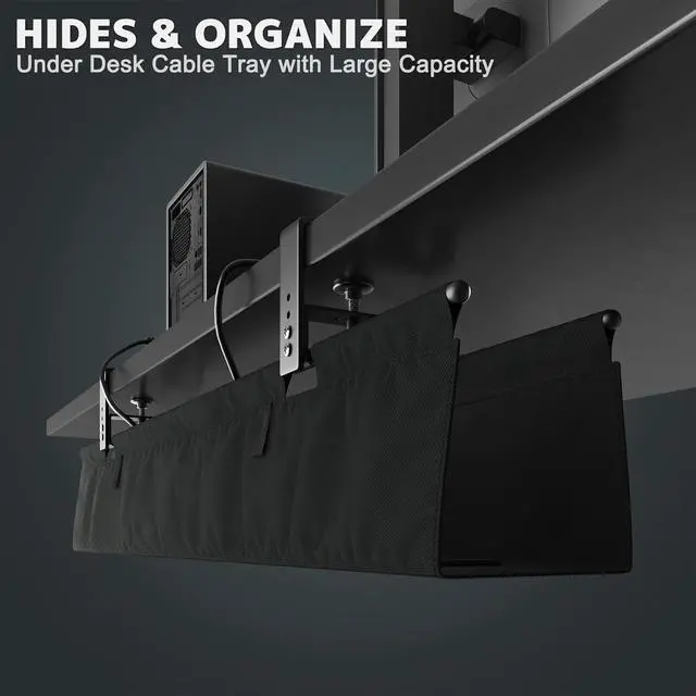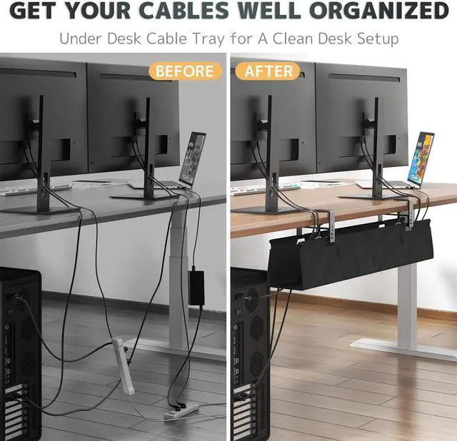All-In-One Cord Management System: This under desk wire management tray handles cable management for different desk needs. Standing desk cord management, wire desk organizer, cord holders, and under desk basket for cords in one