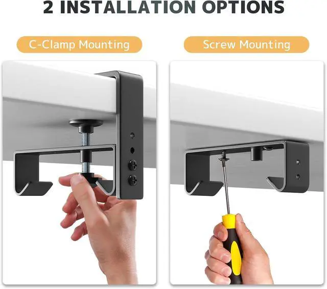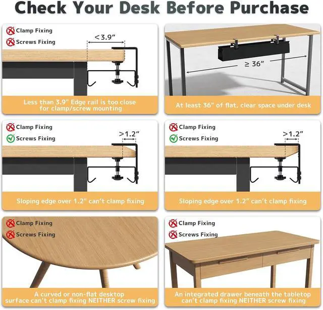Two Ways Installations: This under desk organizer supports both no drill clamp-on and screw fixing installation, it fits most table top materials such as wood table, glass table, and metal table