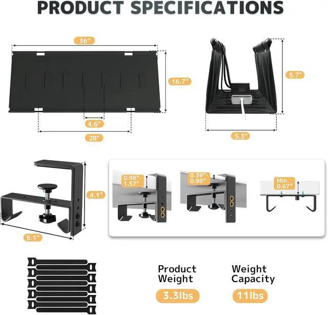 Large Capacity & Neat Organization: This 36" L x 5.3 " W x 5.7 " H cable tray holds all size adapters and sockets. Unfold design lets you add/remove items easily, while built-in ties secure cords. Ideal for hiding clutter under desks in offices or homes