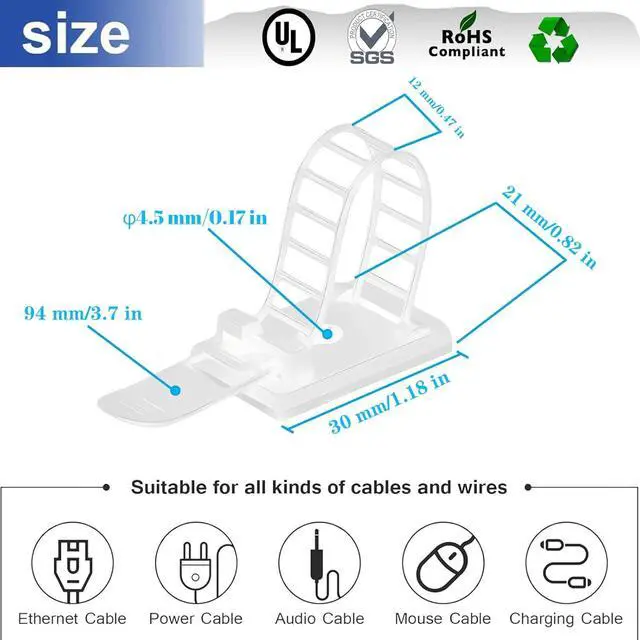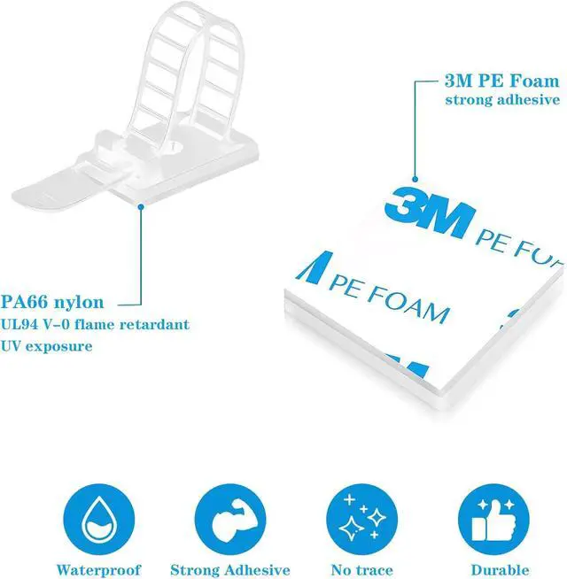 High quality materials: SZFUDIGO adhesive cable management clips adhesive strength is provided by 3M strong adhesive to ensure stability, Simultaneously peeling off the tape will not damage the surface of the adhered object. The main body is made of PA66 nylon material, which is durable and long-lasting Flame retardant grade 94V2 is safer and more reassuring to use