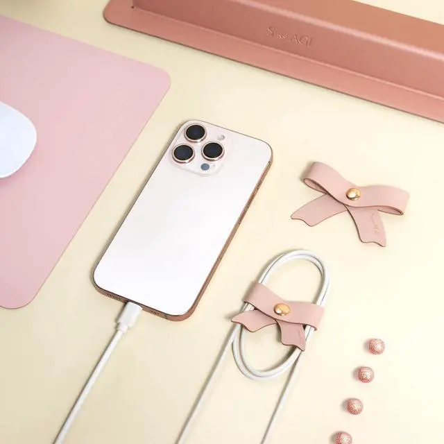 • Adorable Leather Bow Cord OrganizerSay goodbye to the tangled mess on your desk with the adorable leather bow cord organizer. It helps you quickly and effortlessly find the cables or earphones you need.
