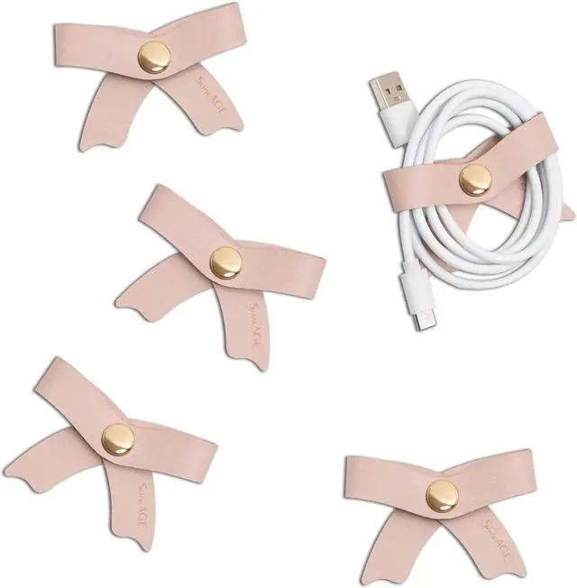SenseAGE 5 Pack Cord Organizer, Bow Cord Keeper, Cable Organizer USB Holder, Leather Cable Management, Cable Straps, Earphone Winder, Storage Straps for Electronics, Earbuds (Dusty Rose, Big)