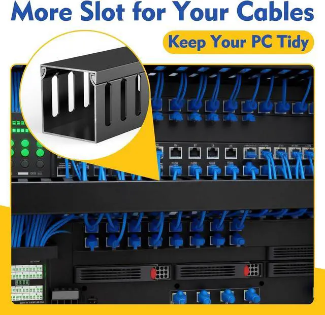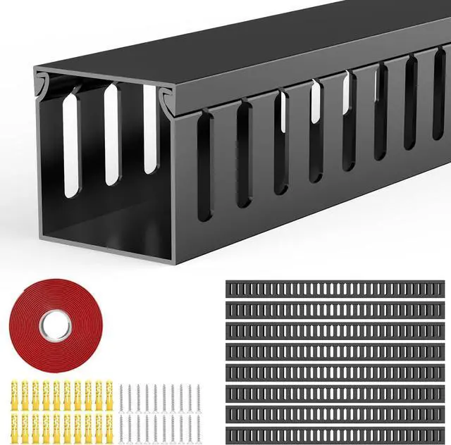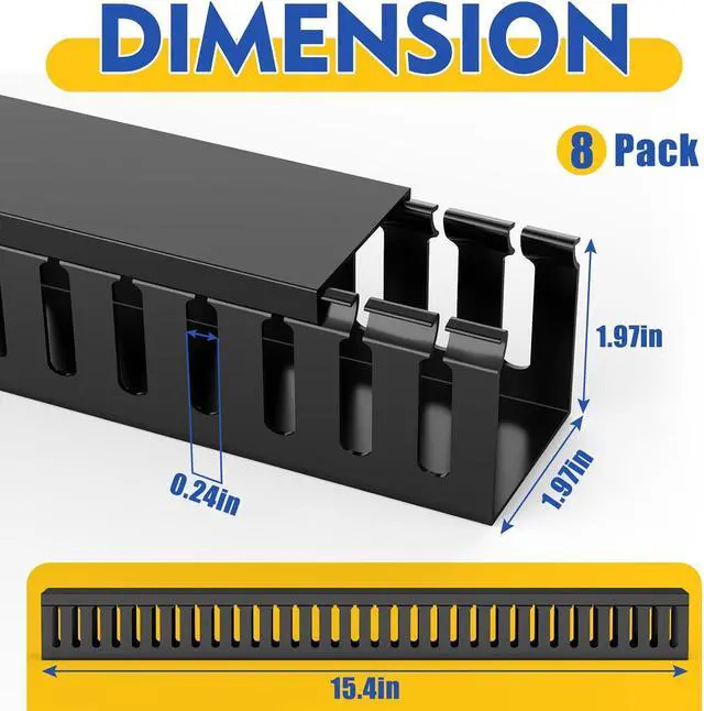 Open Slot Wiring Raceway Cable Duct, 123in Cable Management Channel Cord Track,Desk Wire Channel, Under Desk Cable Management to Hide Cables, Wires for Computers (Black, 1.97" Hx1.97"W, 15.4''L(8 Pc))