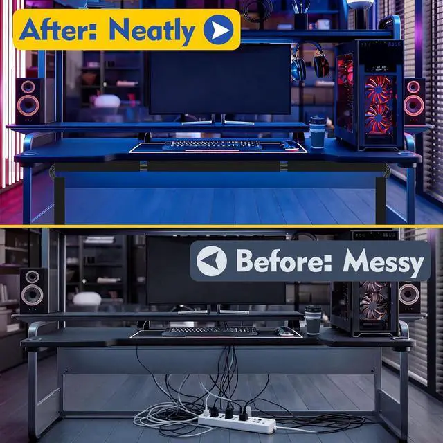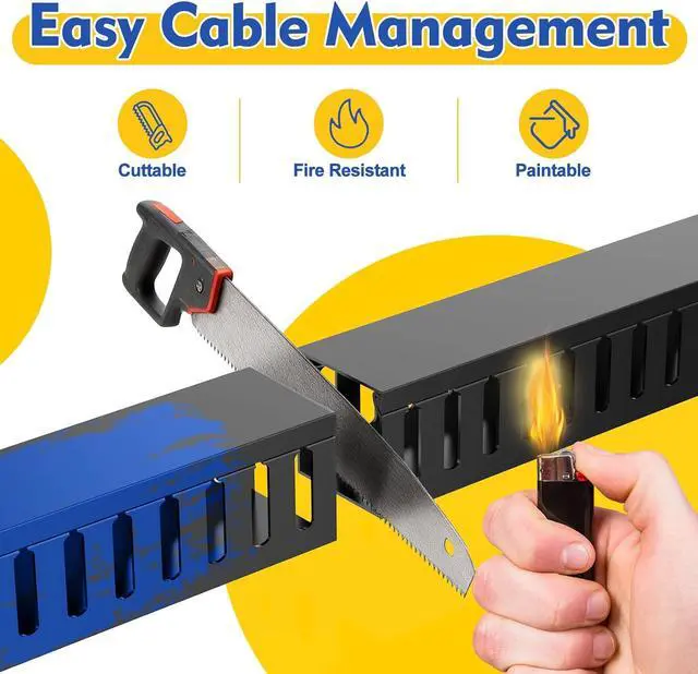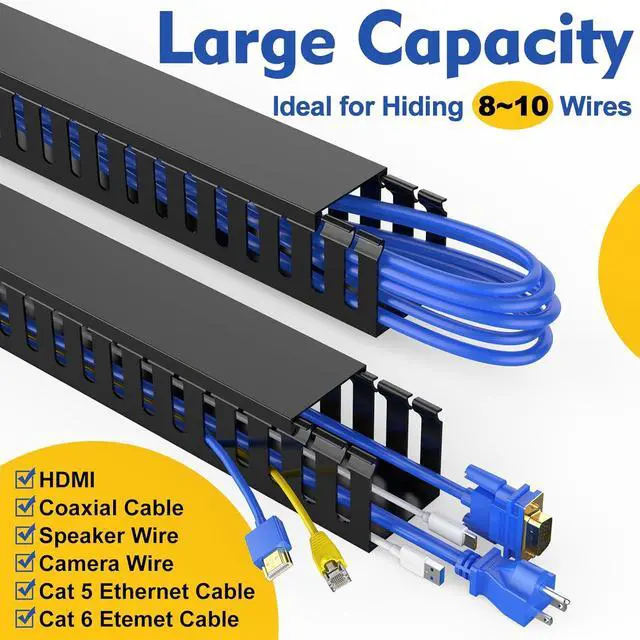 1. CABLE RACEWAY KIT : One-piece cable channel is a great accessory to hide and conceal clutter cables and cords under desk. Perfect for home entertainment system cables, TV wires and computer cords. Save space and keep home neat, protect your family and pets from unsafe cables