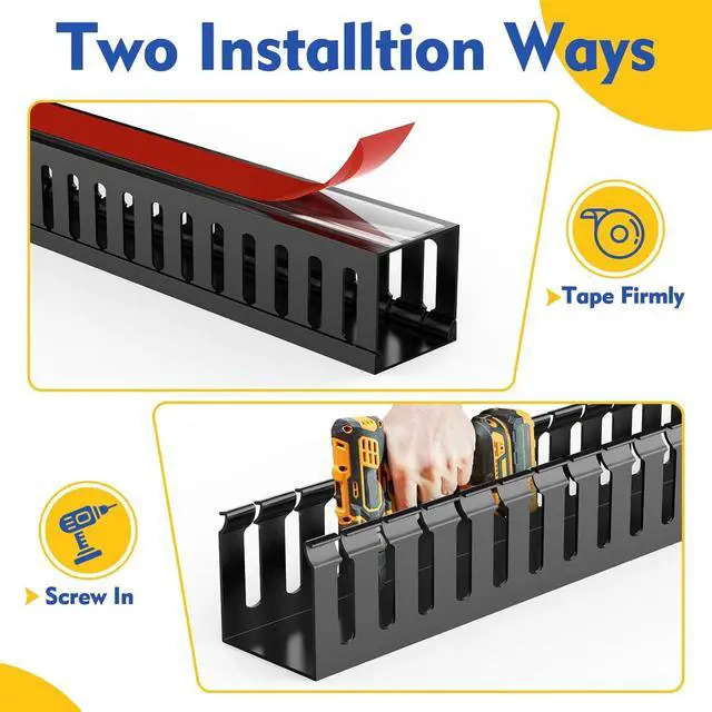 2. TWO QUICK INSTALLATION METHOD : Easy and simple to use. The wire raceway duct has multiple openings to let cables go in and out of the channel freely. Just stick the cord cover and put in on the wall or on the back of the desk. Then align the holes and slide the cover on. You can use the screws if you want to keep channel firmly on the wall
