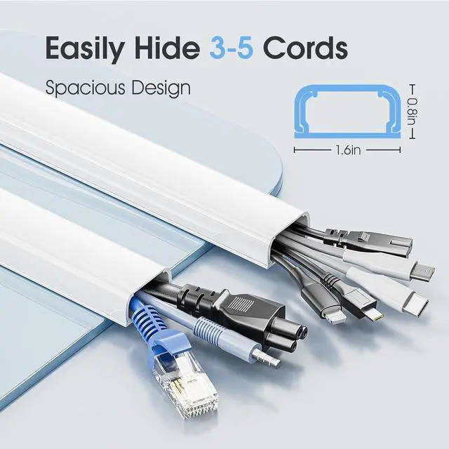 Versatility and safety:Made with high quality PVC materials, our wire hider for cords minimize safety hazards during use, giving you peace of mind. At the same time, our cable raceway minimize the danger of exposed wires, keeping curious little hands and paws away from potential hazards and enjoying a tidy environment