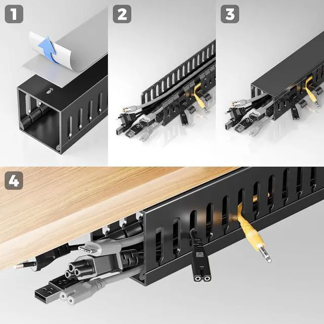 Efficient organization & long-lasting aesthetics organize cables vertically/horizontally to eliminate sagging. The matte finish of our cable raceway black blends into modern decor, and the desk cable management resists yellowing/warping.The desk cable organizer can maintain a polished look in offices/gaming rooms/living spaces easily