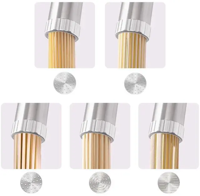 An exceptional electric pasta maker with 5 different molds stands as a beacon of culinary delight, empowering you to easily craft an array of pasta types in the comfort of your home. This gastronomic marvel is meticulously crafted from premium stainless steel and robust PC materials, ensuring longevity and resilience, thereby becoming a cherished heirloom in your kitchen arsenal. Come and bring it home!