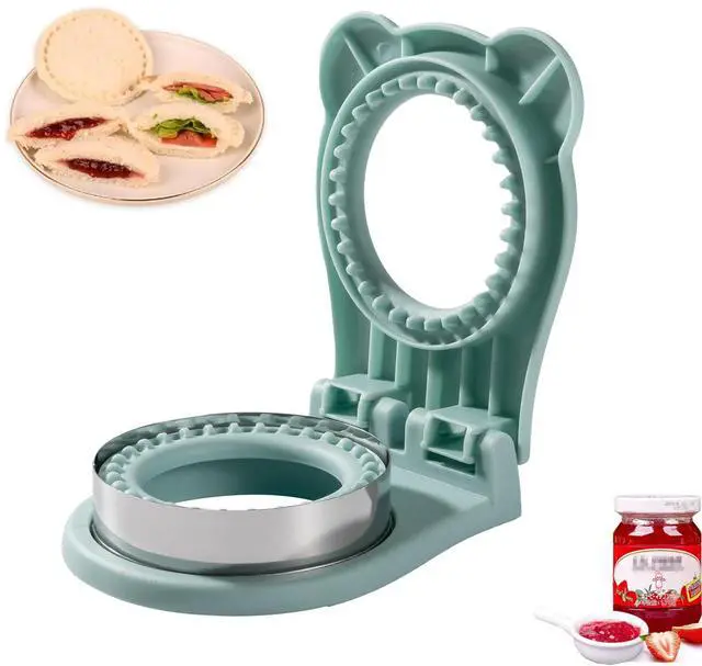 sandwich filling do not over:Start by placing a slice of bread, then assemble your sandwich with the desired filling centered in the middle and not overfilled. Too much and it'll be too packed and spill out or rip. The size of metal cutout is about Circle Shape 3.7Inch.