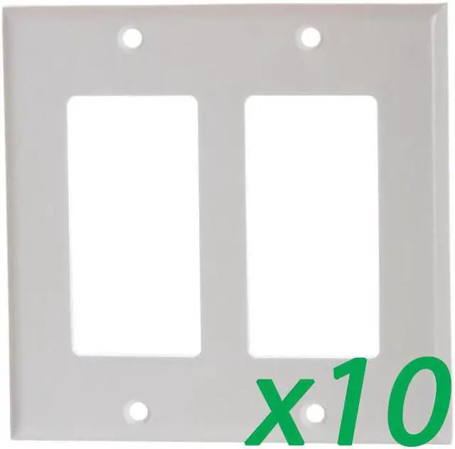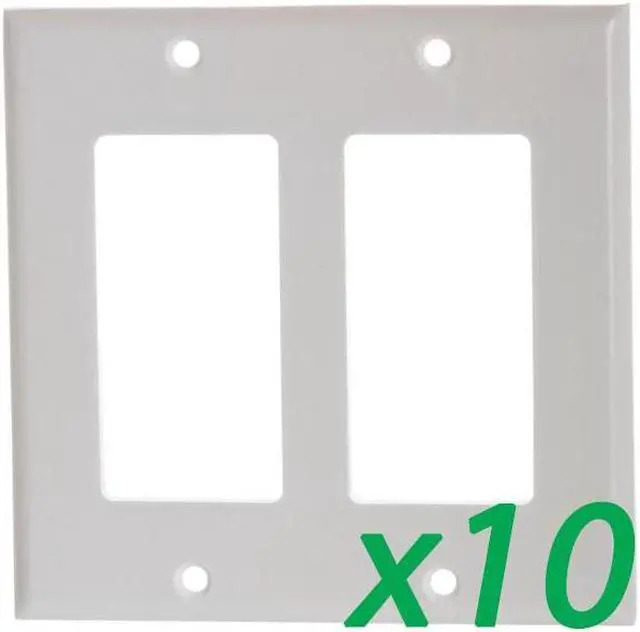 (10 Pack) White Plastic Dounle Gang Decora Style Wall Face Plate 2-Gang