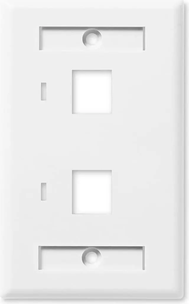 NavePoint Keystone Jack Wall Plate 2-Port, Low Profile, Single Gang, White, 10-Pack
