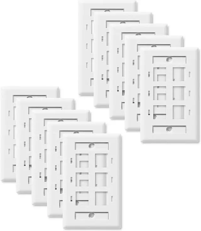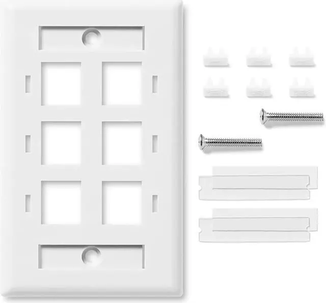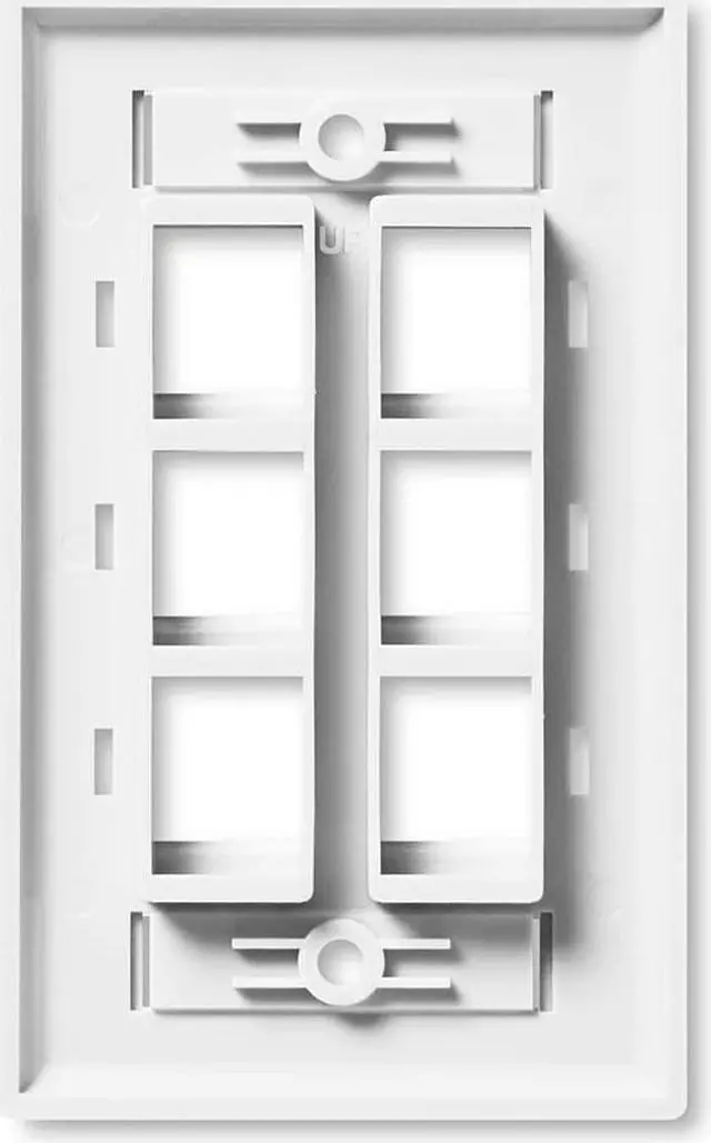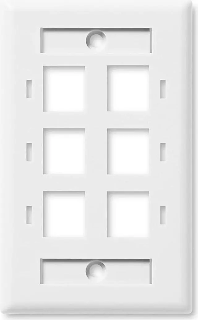 These wall plates are made from high-impact ABS PA-747S plastic and can be used with single gang boxes and keystone modules such as audio/video, voice or Ethernet cable. The keystone jack wall plates are available in 1, 2, 3, 4, and 6 port sizes to fit your needs. Protect and hide your network connections with a clean low-profile design that is offered in multiple colors to perfectly blend into the decor of your home or office. Accepts all Snap-In Keystone type inserts, standard 110 type IDC termination makes installation fast and easy.