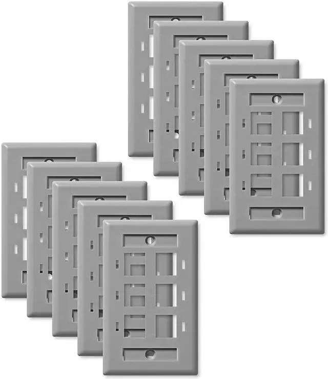 These wall plates are made from high-impact ABS PA-747S plastic and can be used with single gang boxes and keystone modules such as audio/video, voice or Ethernet cable. The keystone jack wall plates are available in 1, 2, 3, 4, and 6 port sizes to fit your needs. Protect and hide your network connections with a clean low-profile design that is offered in multiple colors to perfectly blend into the decor of your home or office. Accepts all Snap-In Keystone type inserts, standard 110 type IDC termination makes installation fast and easy.