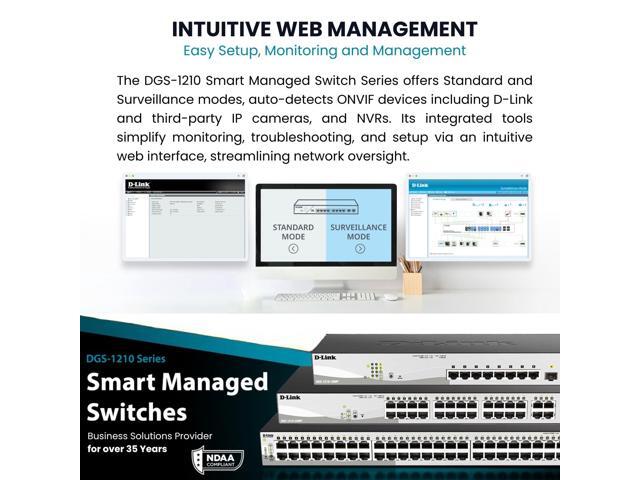 - COMPREHENSIVE SECURITY: Features include Access Control List (ACL), 802.1X / RADIUS, ARP Spoofing Prevention, and D-Link Safeguard Engine