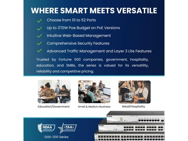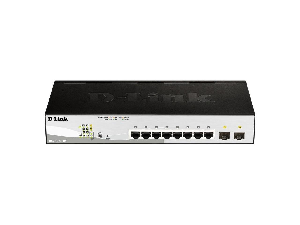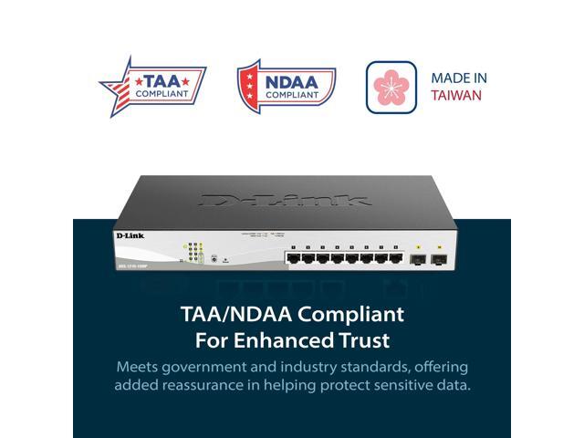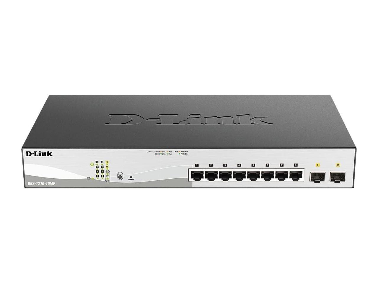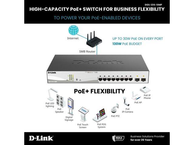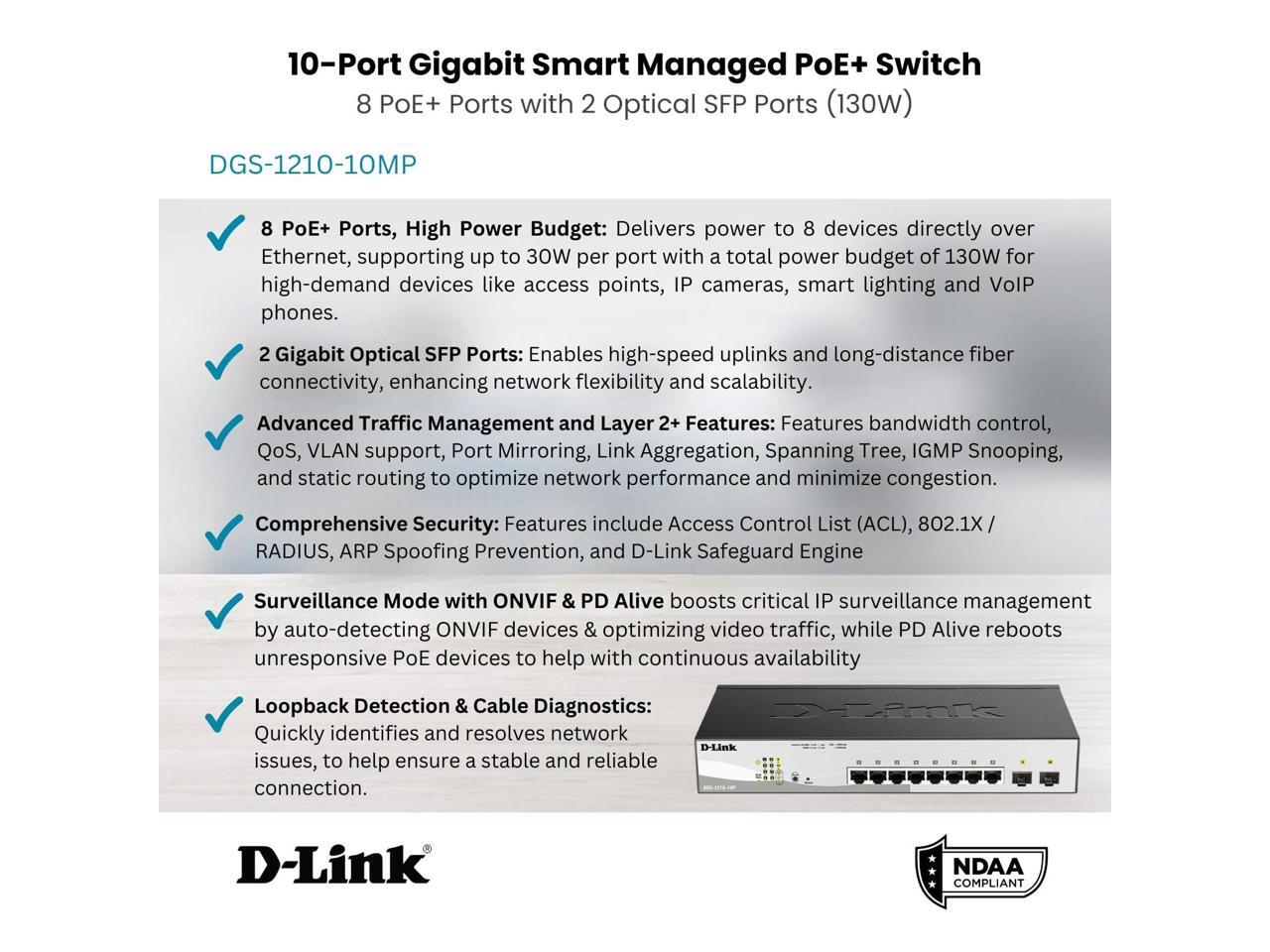 D-Link 10-Port Gigabit Smart Managed PoE+ Switch | 8 PoE+ Ports (130W) + 2 Optical SFP Ports|L3 Lite|NDAA/TAA Compliant (DGS-1210-10MP)