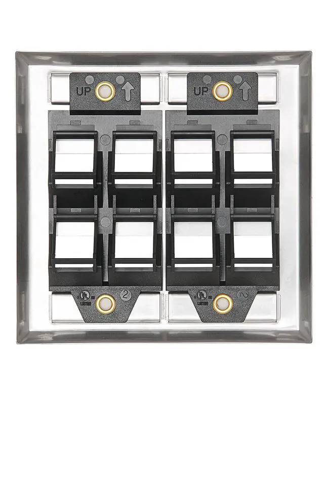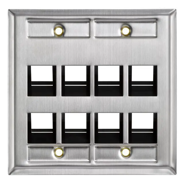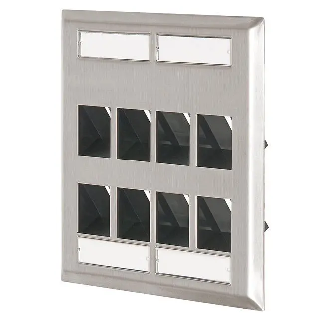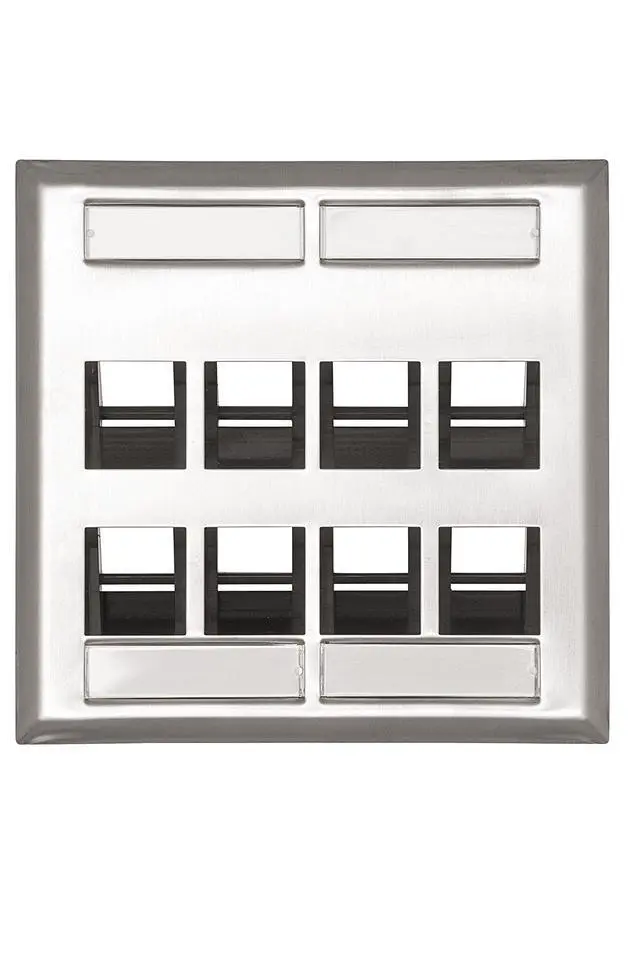 8-Port Angled Stainless Steel QuickPort Dual Gang Wallplate with ID Windows, 43081-2L8